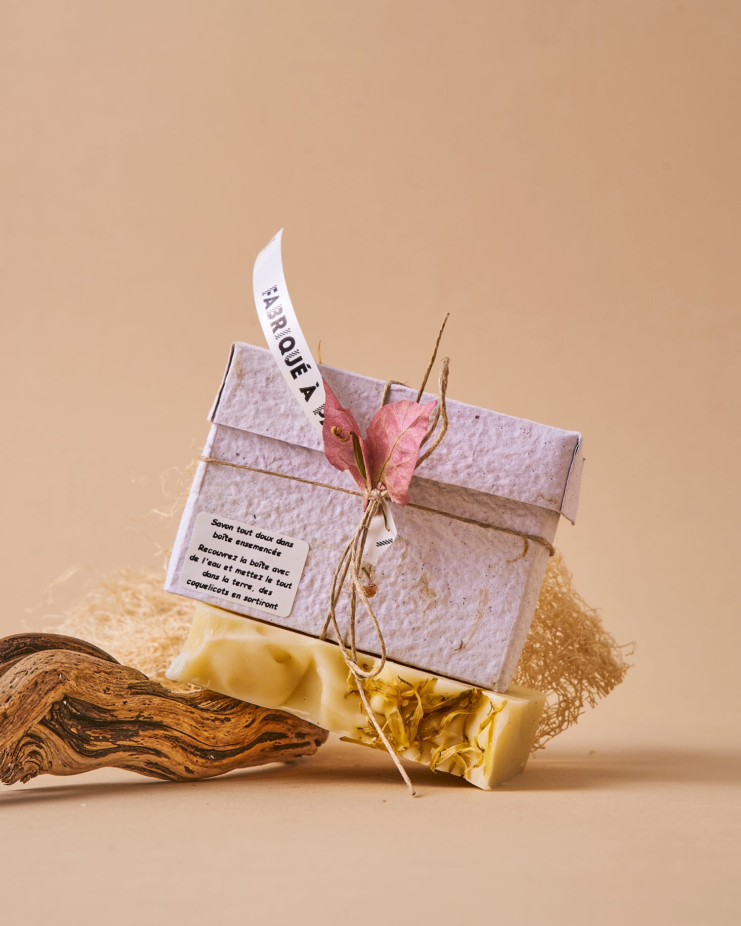 Nous vous proposons un emballage en papier fait à la main et ensemencé de graines de coquelicots, ce qui en fait un deuxième cadeau pour vos invités