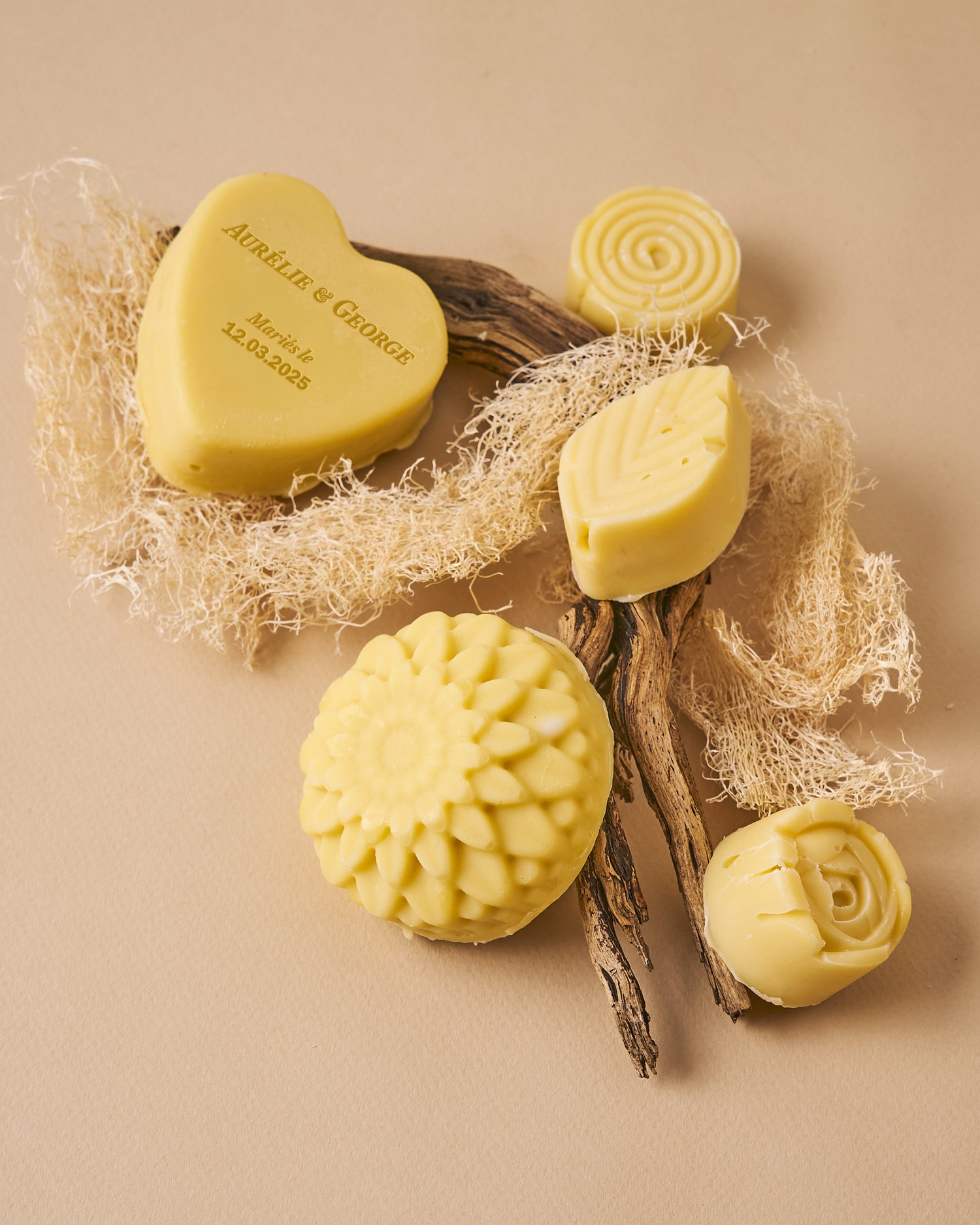 - Savons avec les prénoms des époux : Un souvenir élégant et inoubliable de votre mariage.